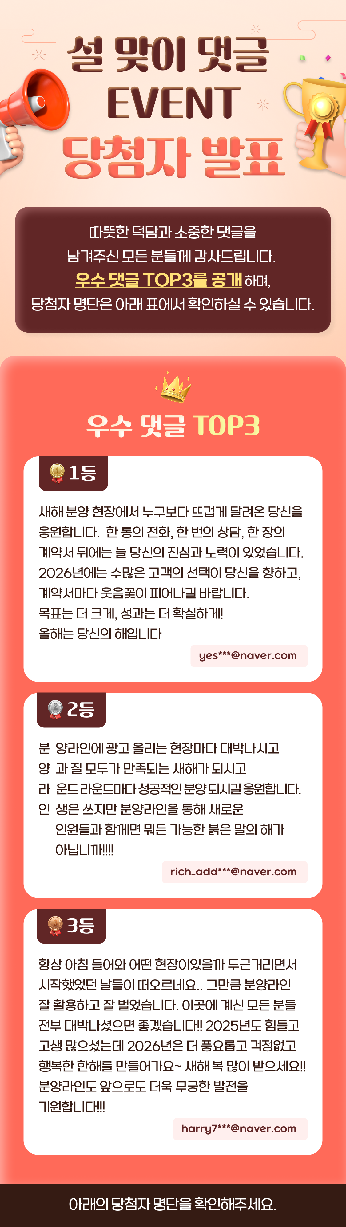 2월 분양라인 설 맞이 새해 댓글 이벤트에 많은 관심과 참여 진심으로 감사드립니다.